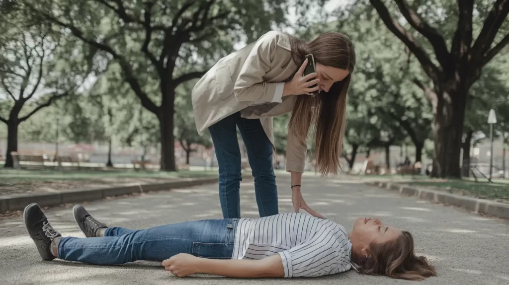 Check if the person is responsive by gently shaking their shoulders and asking loudly, “Are you okay?”